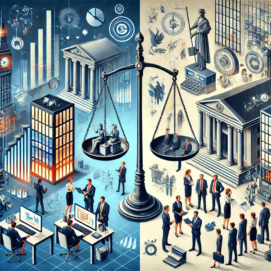 illustration créée par l'IA qui la différence entre le secteur public et privé